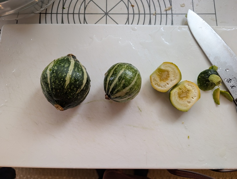 P.S.写真はスタッフぽんちゃんが悪戦苦闘しながら野菜作りをしている中で、やっと収穫できたかぼちゃです。まだ未熟だったんだけど、うどんこ病が葉っぱたちに蔓延してしまったので、赤ちゃんのかぼちゃのまま収穫しました。塩とオリーブオイルで焼いて食べたら、ズッキーニみたいでした。(もともとかぼちゃとズッキーニは兄弟みたいなものだからそうだよね)